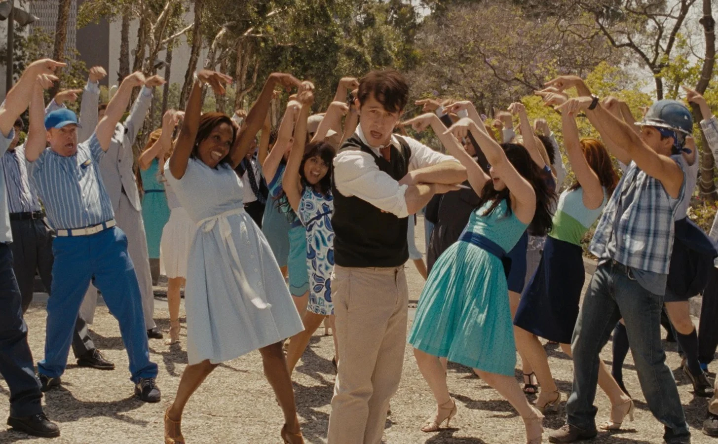 В короткой, но яркой музыкальной сцене, герой Джозефа Гордона‑Левитта танцует на улицах Лос‑Анджелеса под хит Hall & Oates, охваченный эйфорией первого свидания. You Make My Dreams становится саундтреком к краткому мигу абсолютного счастья. Парень ещё не знает, что это мгновение — пик его отношений с героиней Зоуи Дешанель. И тем драматичнее выглядит следующий, построенный на контрасте эпизод.