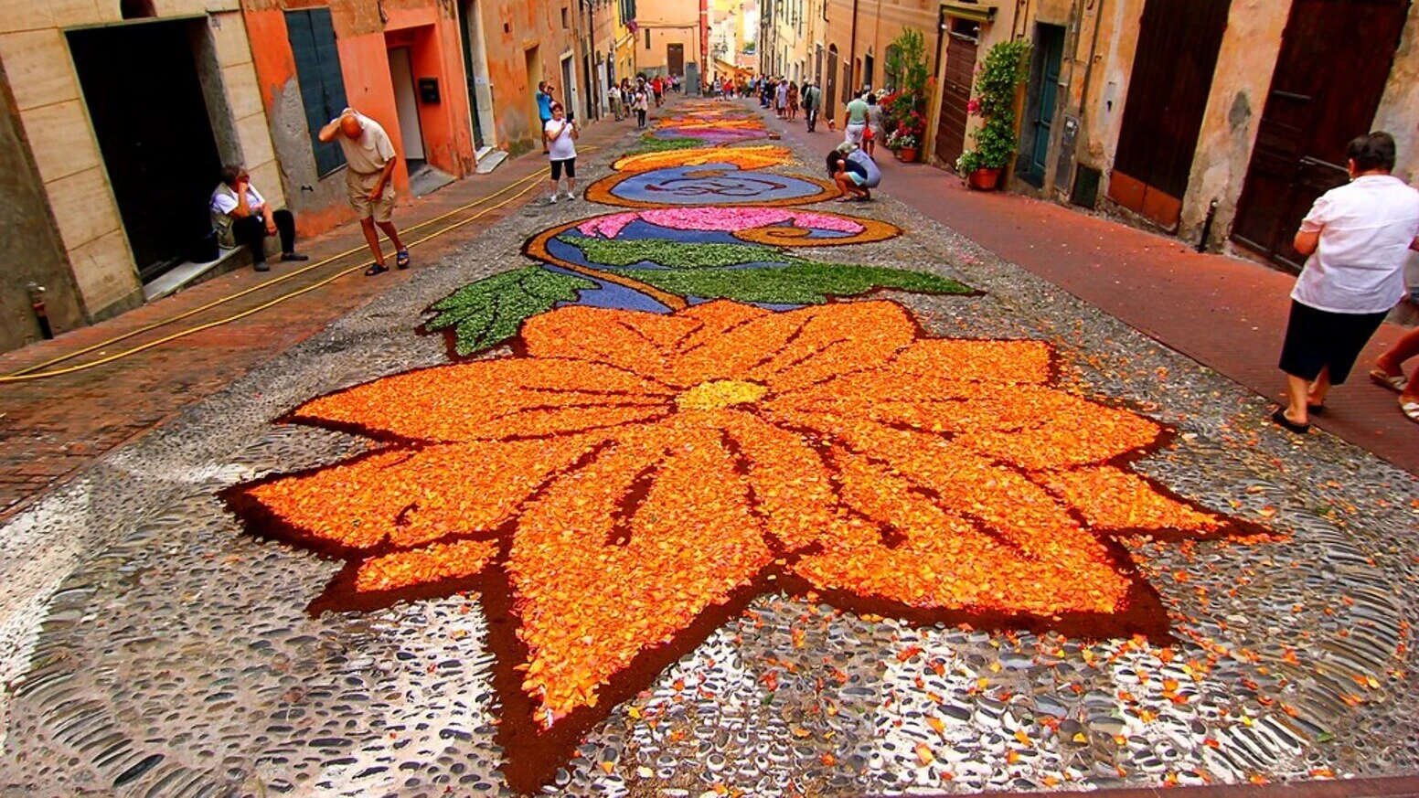 Инфьората — одна из самых необычных и красивых итальянских традиций. С середины мая и до конца июня маленькие итальянские городки по всей стране покрываются благоухающими коврами из цветочных лепестков. На площадях, на улицах и лестницах из них выкладывают многометровые картины, как из разноцветной мозаики.