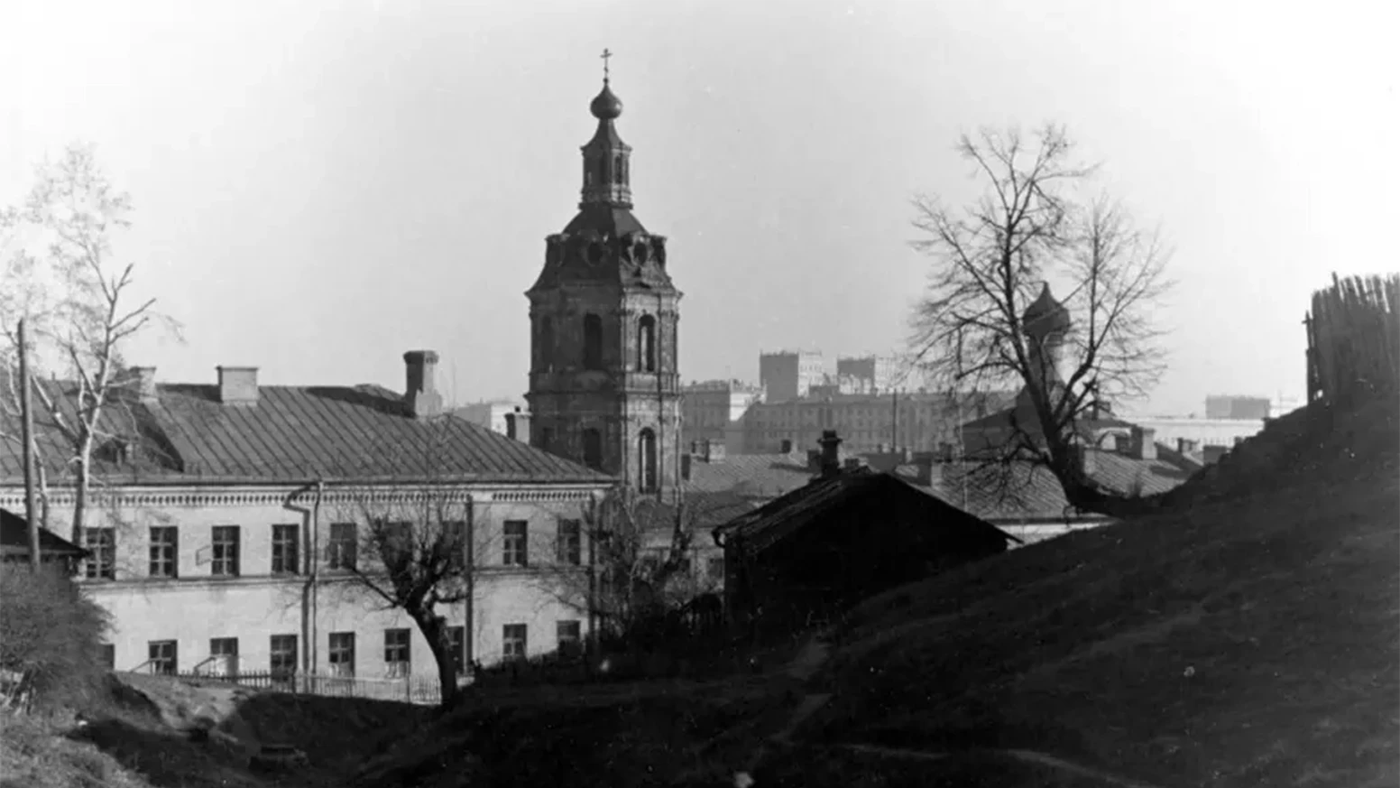 По краю оврага течет речка Кровянка. Есть две версии происхождения этого названия – одни ученые говорят, что так потому, что воды Кровянки очень богаты железом, другие – что так как на берегу была Живодерная слобода воды реки обагрялись кровью. Как бы там ни было – место очень живописное, пусть река и скрыта в подземном коллекторе. А Андреевскими заразы стали по монастырю, что стоит у подножия самого известного в этой местности здания – Российской Академии наук. Его еще называют «Золотые мозги» за очень любопытную крышную установку.