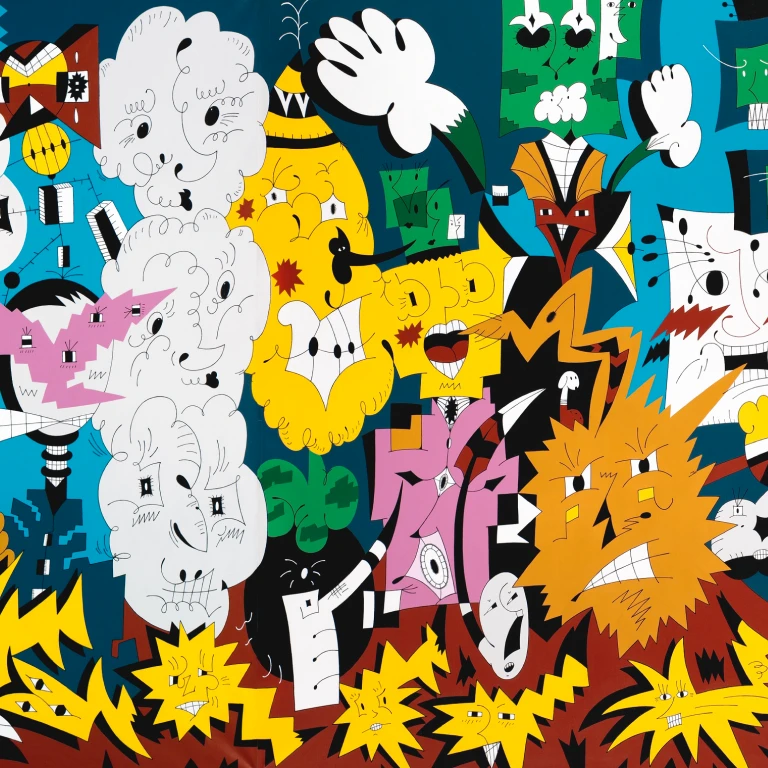 Визуально экспозиция построена на эффектном контрасте: «цветная» часть отвечает за момент чистого вдохновения, а черно-белая — за тревогу и внутренние блоки. Через живопись, ироничную вышивку, керамику и гигантские пластиковые фигуры художники рассказывают историю исцеления через абсурд. Идеальная выставка для декабря, чтобы выдохнуть, посмеяться над собственными страхами и превратить предновогодний хаос в яркую игру.