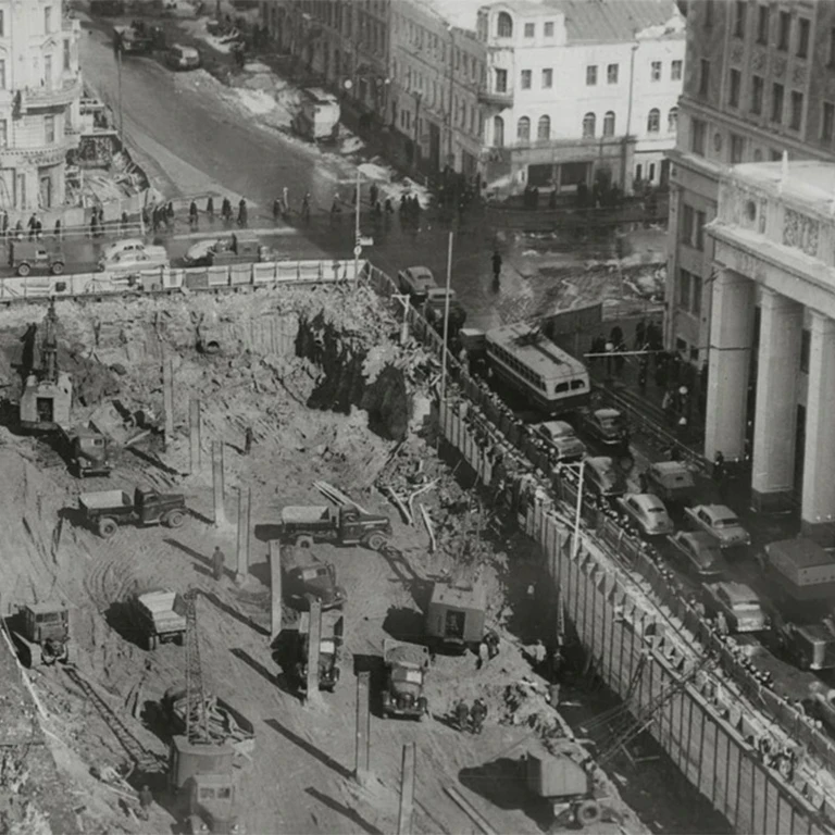 Открыли сразу несколько тоннелей и эстакад: Ульяновскую, Таганский тоннель, тоннель Чайковский, тоннель на Дорогомиловской улице и так далее. И почти все они производились традиционным способом – снос мешающей трассе застройки, рытье котлована, установка опор, заливка бетоном, укладка слоев износа, пуск в эксплуатацию... Но что делать с главной улицей в городе? Только поставили памятник Маяковскому, недавно построили концертный зал, преобразовали дореволюционную застройку у Брестских улиц, отгрохали гостиницу «Пекин», для отделки интерьеров пригласив китайских специалистов и создав ультрасовременную на тот момент инфраструктуру вокруг отеля. Сложно. Вот и приняли решение дом над тоннелем не сносить.