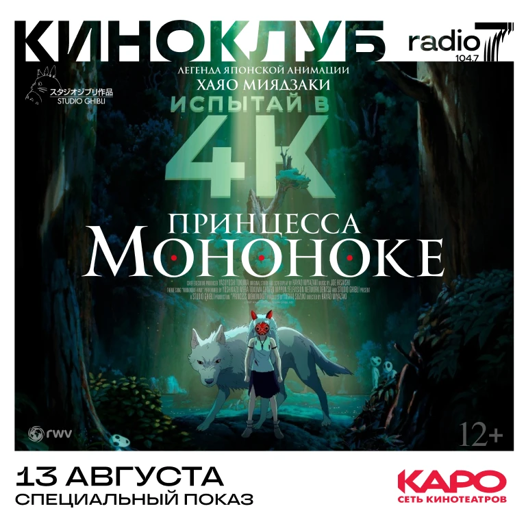 Мы вместе с сетью кинотеатров КАРО приглашаем вас 13 августа в кинотеатр «КАРО 11 Октябрь» на специальный показ фильма «Принцесса Мононоке» — аниме-блокбастер Хаяо Миядзаки.