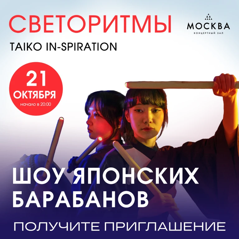 Коллектив Taiko in-Spiration представит премьеру программы «Светоритмы» – и в этом названии раскрывается ее концепция: звуки традиционных японских барабанов тайко будет сопровождать завораживающая игра света.