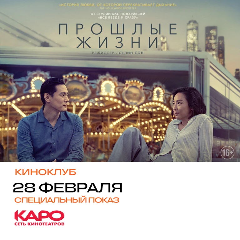 Зайдите на сайт нашего Киноклуба, заполните форму, и, возможно, именно вас мы будем встречать 28 февраля в кинотеатре «КАРО 11 Октябрь» на специальном показе фильма «Прошлые жизни»!
