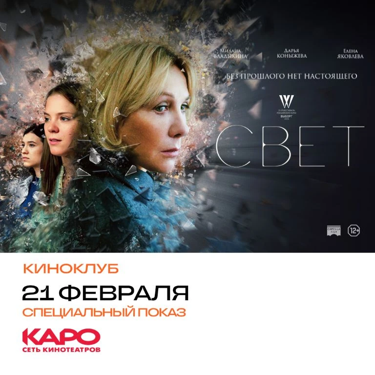 Зайдите на сайт нашего Киноклуба, заполните форму, и, возможно, именно вас мы будем встречать 21 февраля в кинотеатре «КАРО 11 Октябрь» на специальном показе фильма «Свет»!