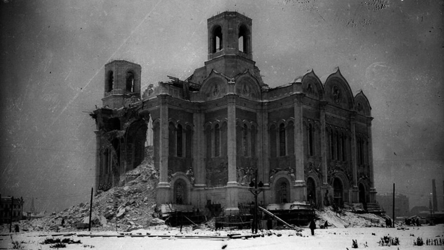 Рытьё котлована будущего дворца началось в 1935 году, а к 1939-му был завершён фундамент высотной части здания и возведен каркас до 8 этажа. С началом Великой Отечественной войны от проекта временно отказались. Часть металлических конструкций Дворца пошла на изготовление противотанковых ежей для обороны Москвы. От идеи строить дворец отказались в 1958. Котлован — некрасиво. Потому и хлам. И построили бассейн. Лепота! Ну а после была уже другая история.